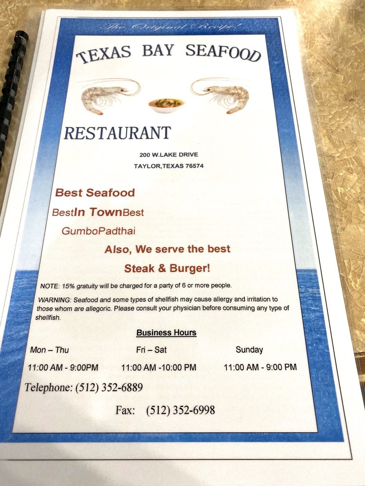 Taylor Seafood and Steaks is a casual dining spot in Taylor, TX, offering a diverse menu of steaks, seafood, and American cuisine. Known for its generous portions and delicious options, customers rave about the grilled shrimp, scallops, and catfish. The restaurant also serves mouthwatering fried shrimp and grilled salmon, catering to different tastes. The ambiance may be plain, but the food surpasses expectations, excelling in taste and freshness. With accommodating staff and prompt service, Taylor Seafood and Steaks provides a welcoming dining experience for all. Whether you're in the mood for seafood, steak, or a hearty salad, this establishment offers something for everyone. Make sure to try the appetizers, desserts, and enjoy the variety of menu options available for a satisfying and enjoyable meal.